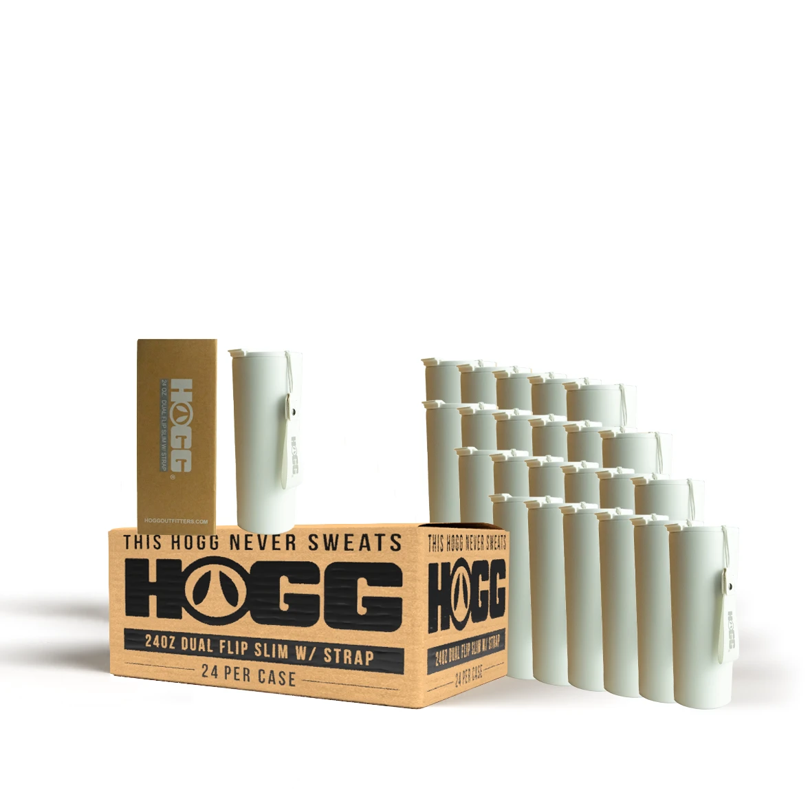 24oz DUAL FLIP SLIM W/ STRAP CASE (24 UNITS) – WHITE